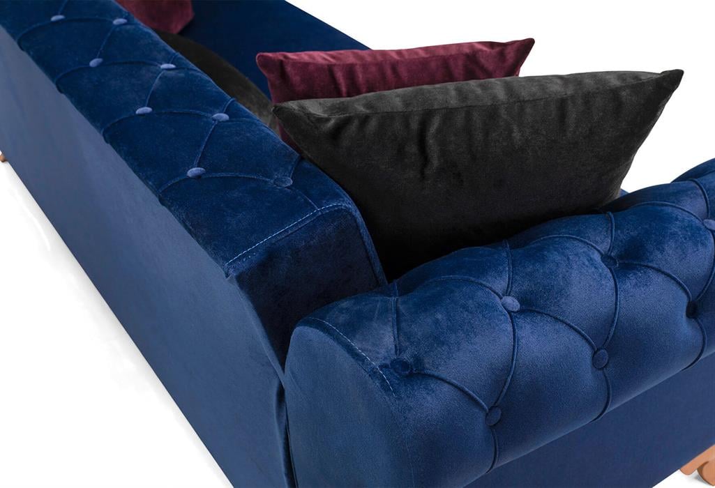 Aden Üçlü Koltuk (Ceviz Ayaklı / Lacivert)
