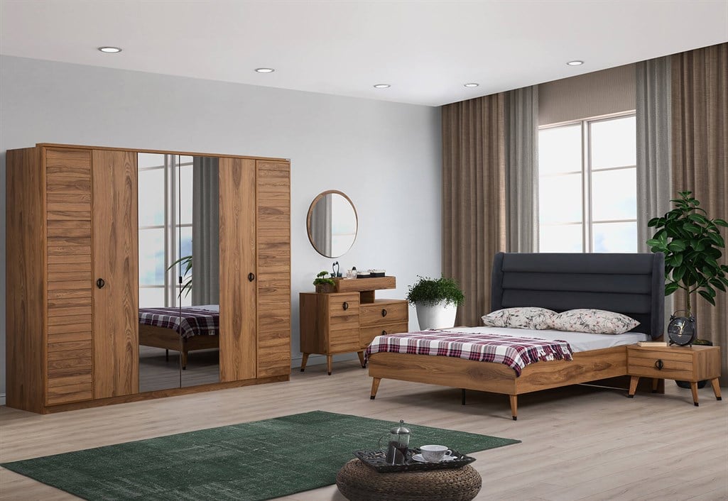 Takım İçeriği: Gardırop + Aynalı Şifonyer + 2 Komodin + Başlık