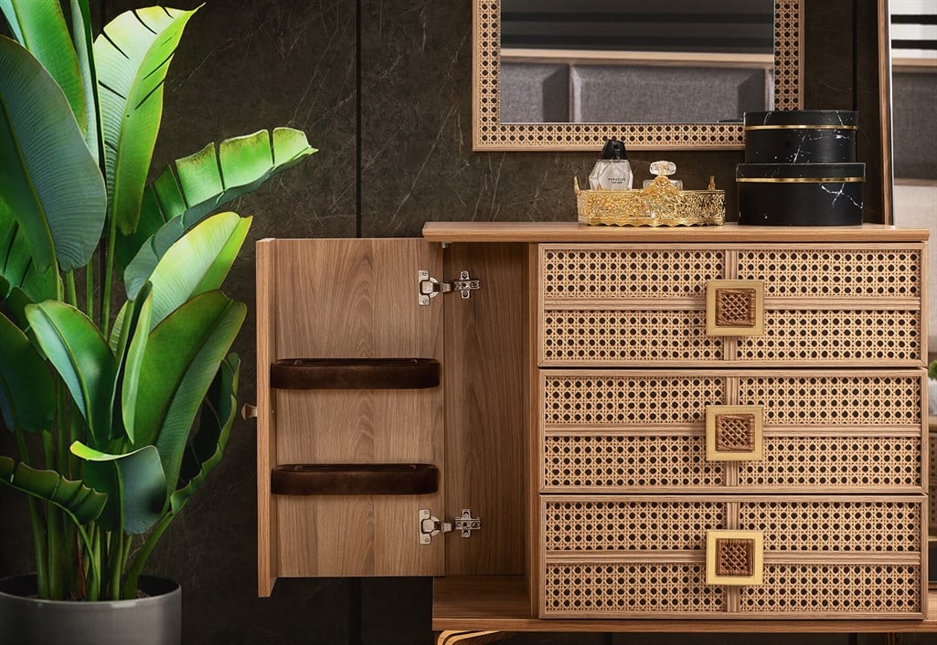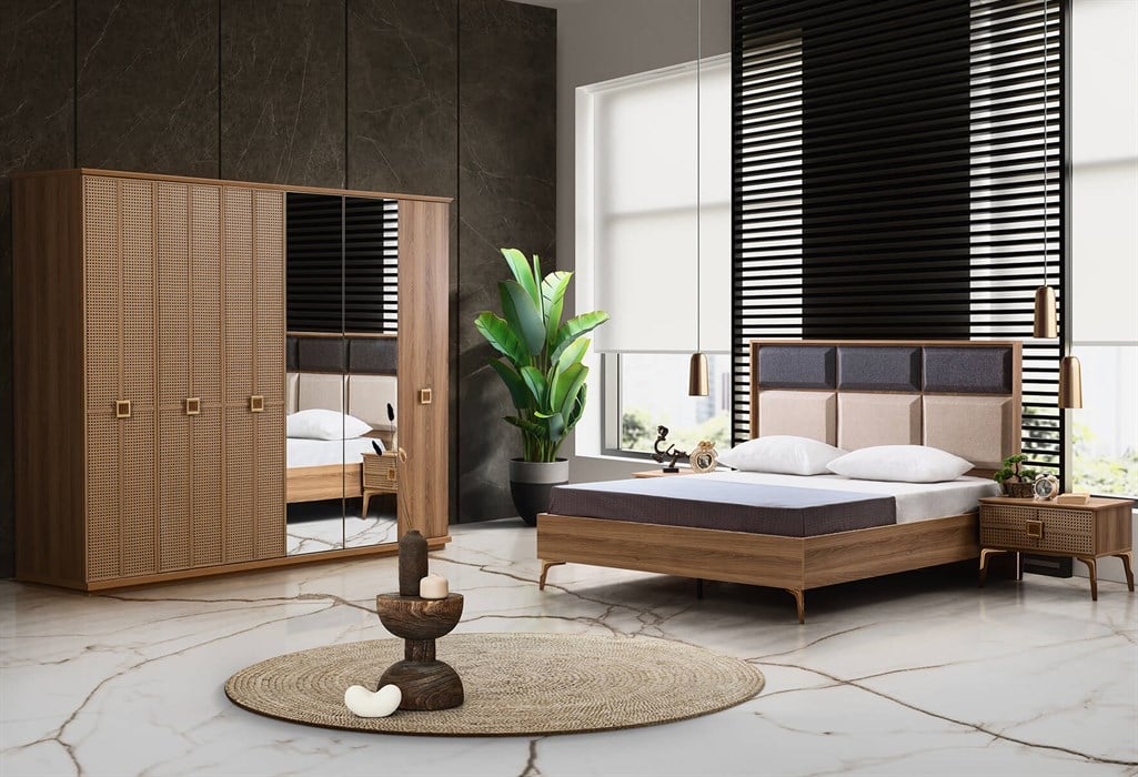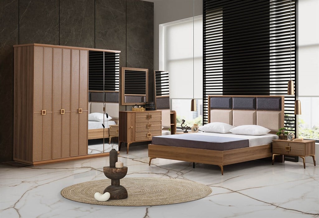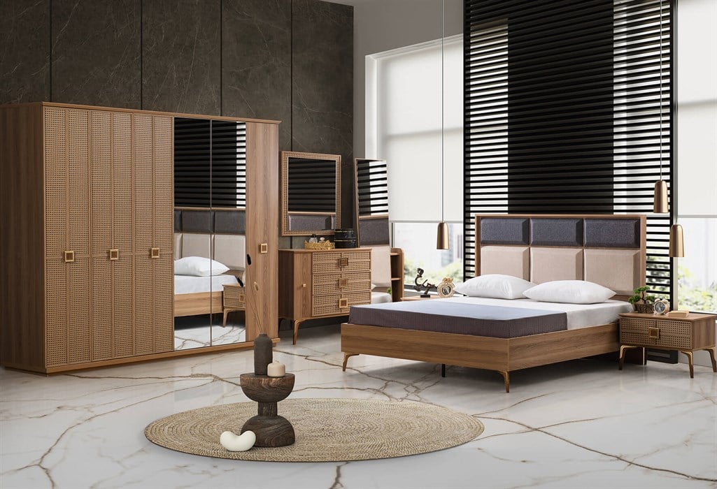 Takım İçeriği: Gardırop + Aynalı Şifonyer + 2 Komodin + Başlık