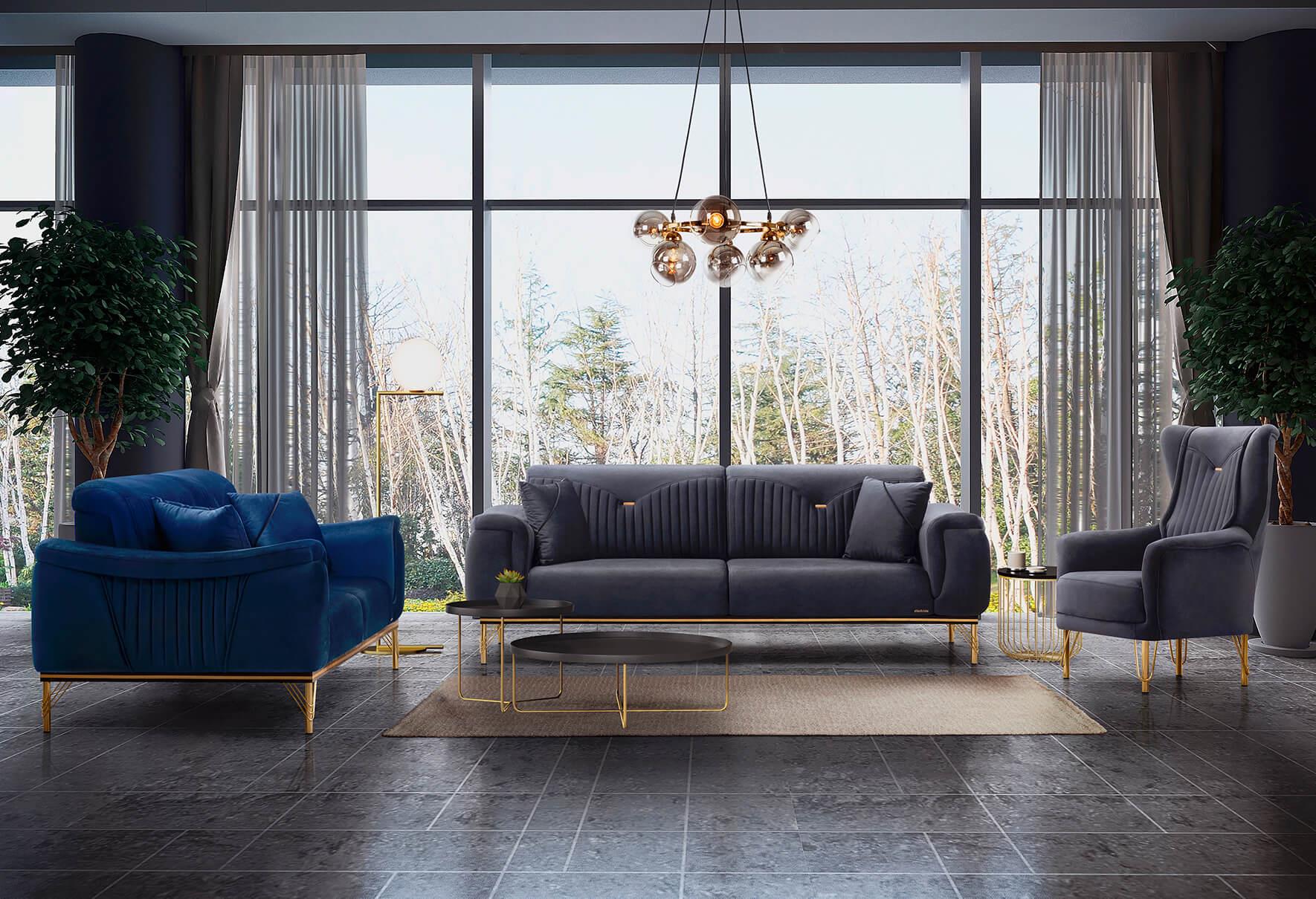 Loya Üçlü Koltuk (Lacivert)