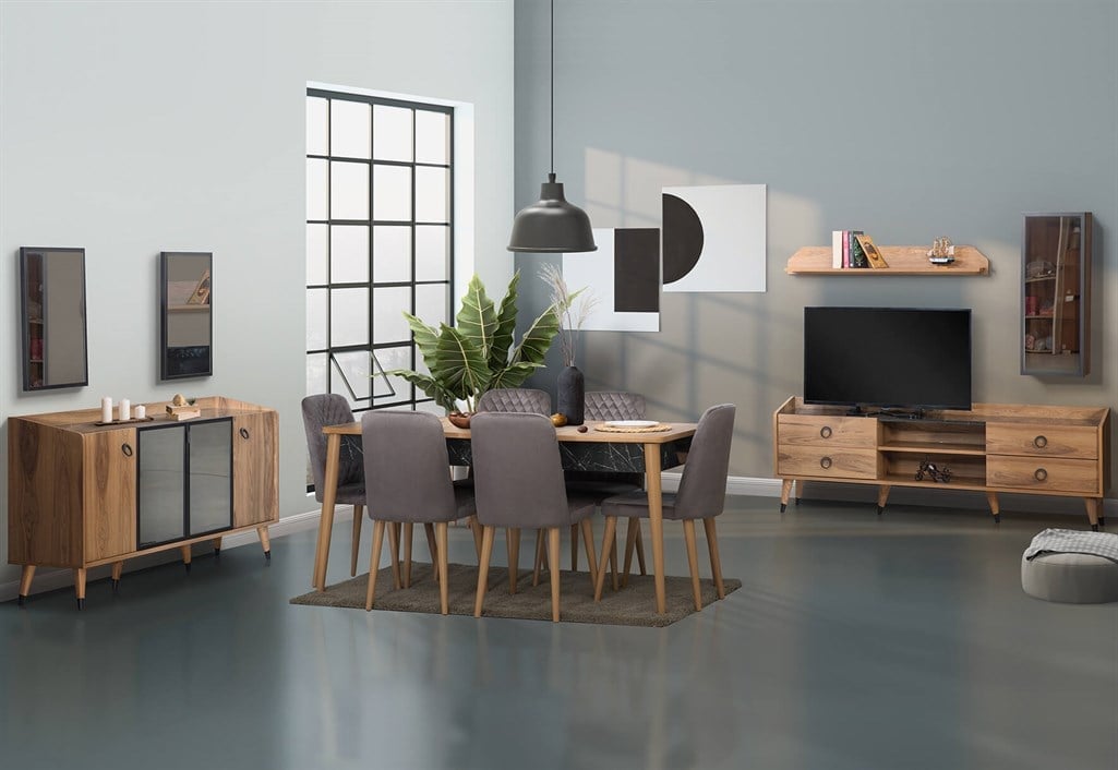 Takım İçeriği; Konsol+Tv sehpası+Masa+6 Sandalye