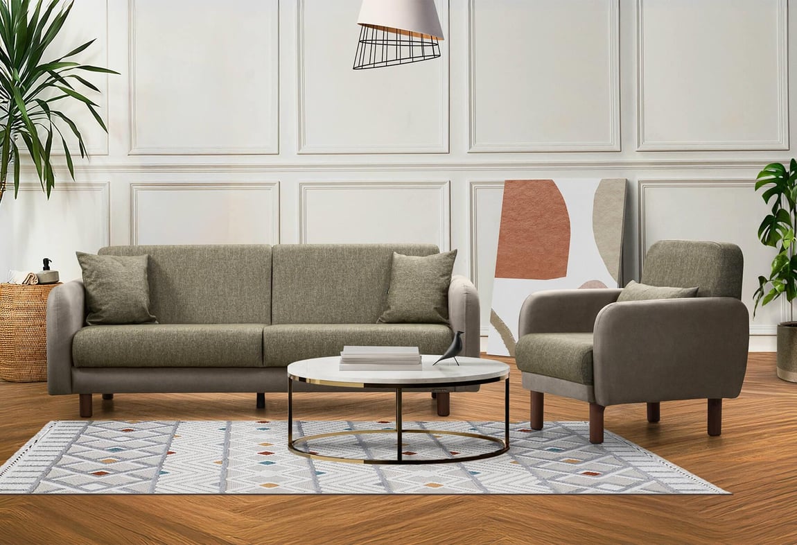 Milano Kanepe Takımı (Taş Rengi Deri-Yeşil Kumaş)