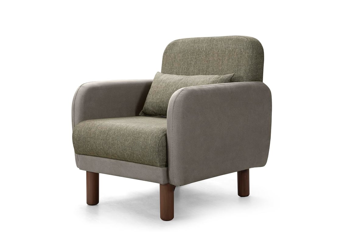 Milano Berjer (Taş Rengi Deri-Yeşil Kumaş)