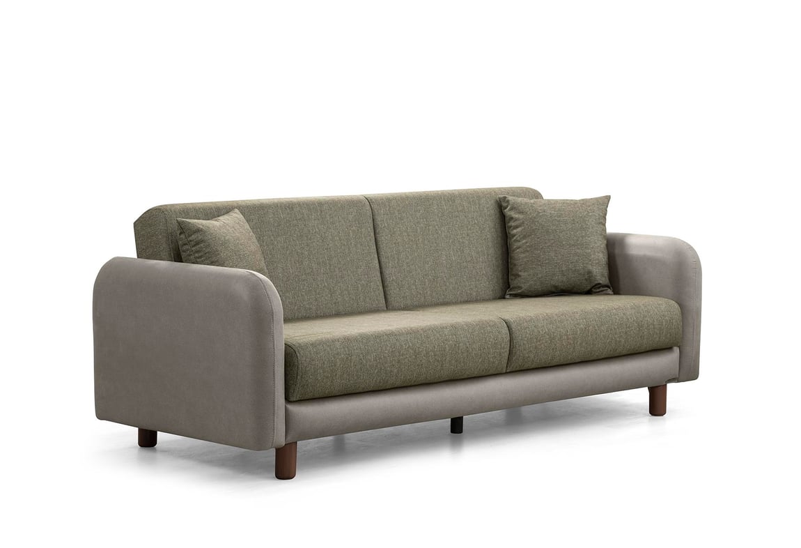 Milano Kanepe (Taş Rengi Deri-Yeşil Kumaş)