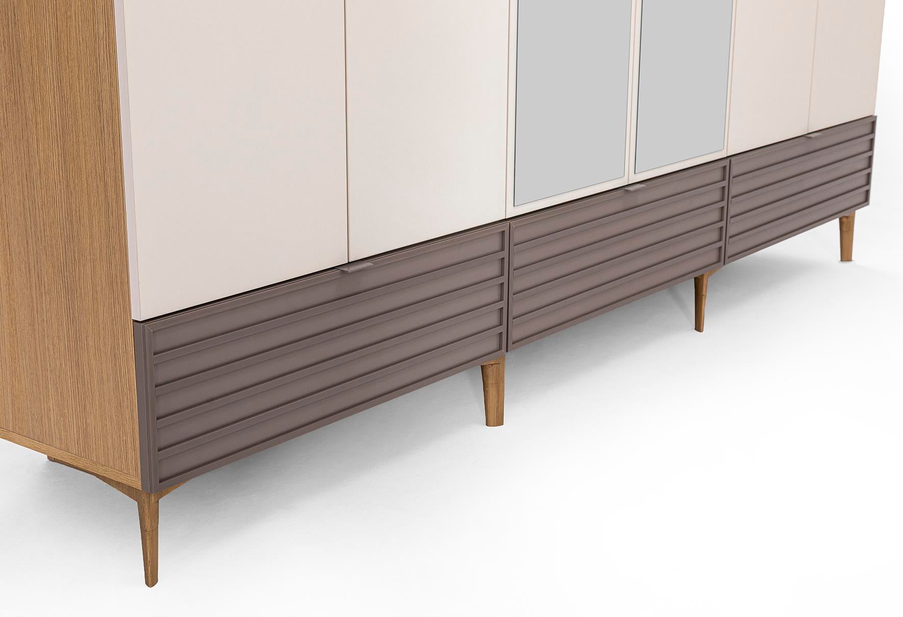 Gardırop Üründe sadece 6 kapılı seçeneği sunulmuştur. Raf tasarımı ile müşterinin çok amaçlı kullanımına uygun tasarım Sağlanmıştır. Menteşelidir