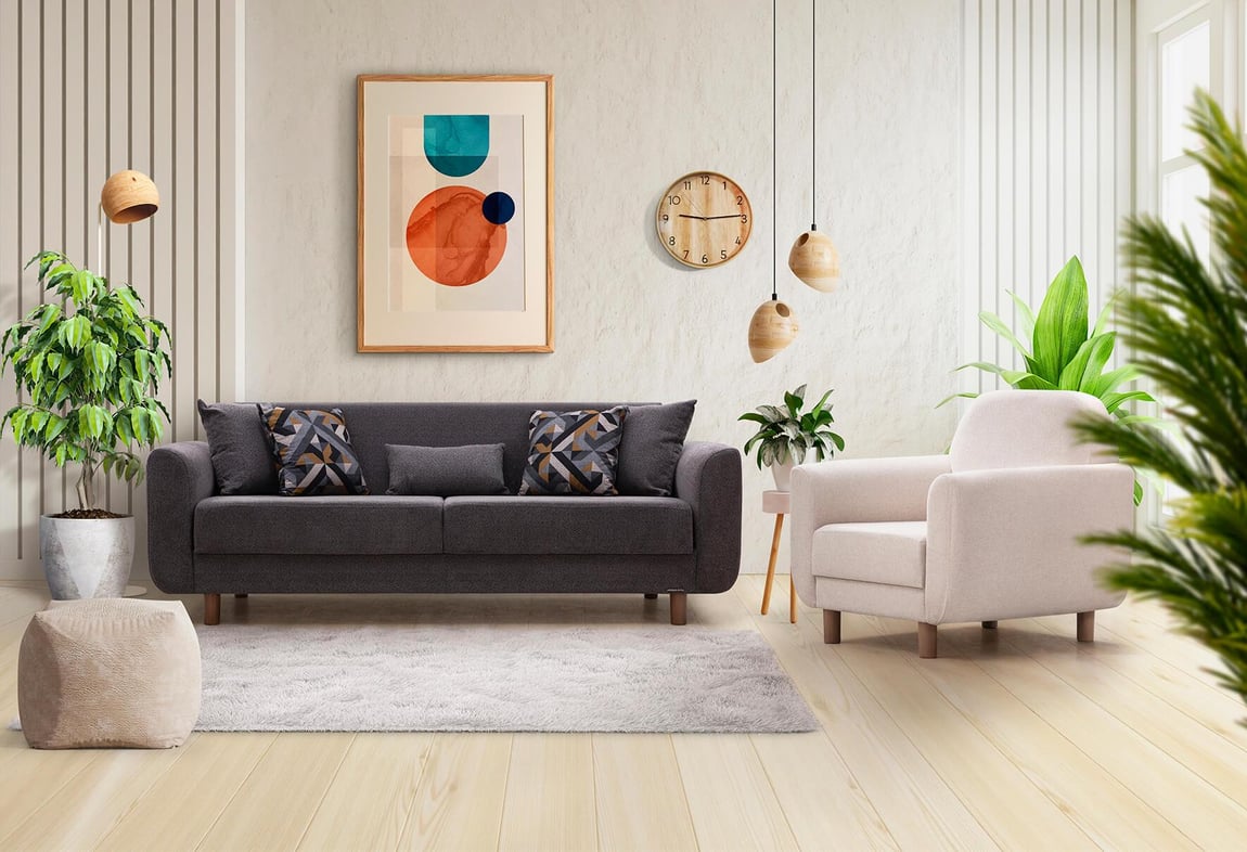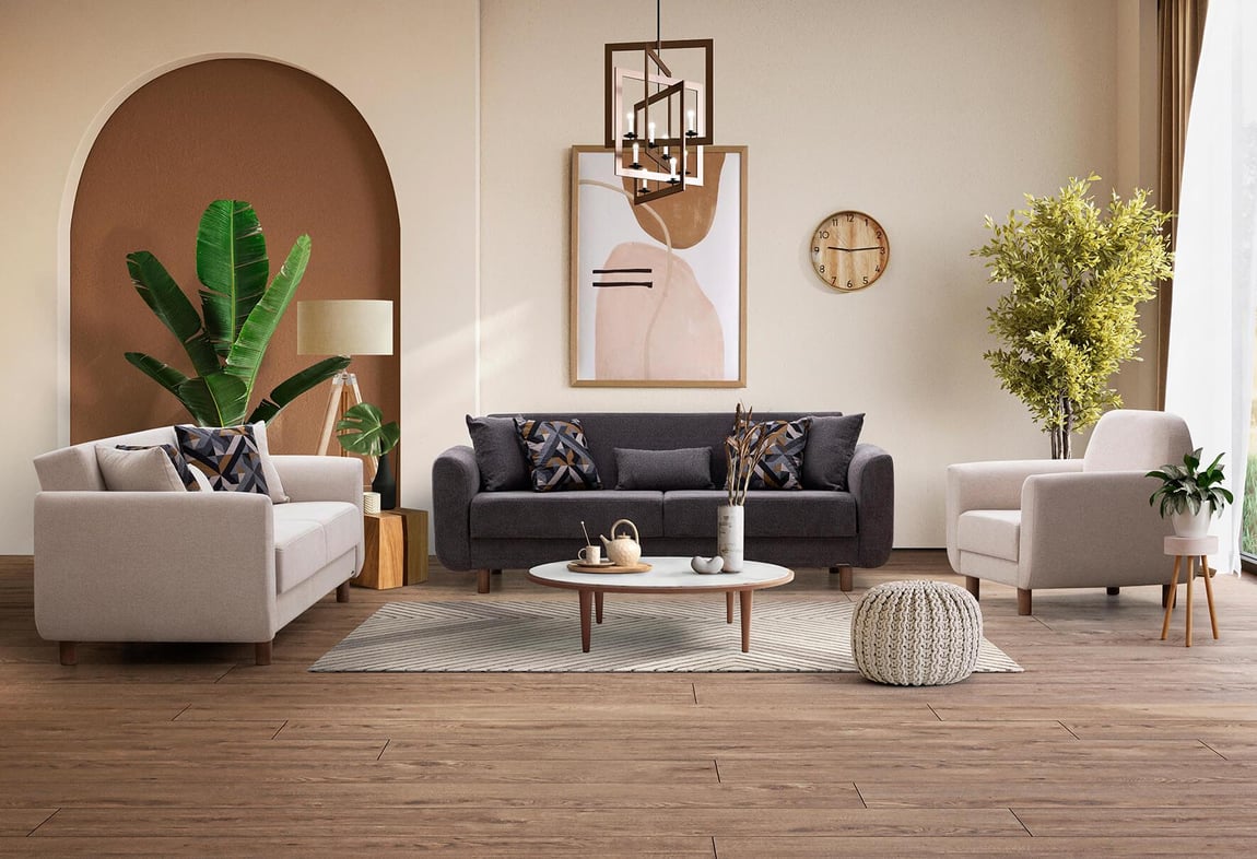 Nisa Kanepe Takımı (Gri-Krem)